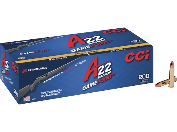 CCI A22 Ammunition 22 Winchester Magnum Rimfire (WMR) 35 Grain GamePoint Jacketed Soft Point